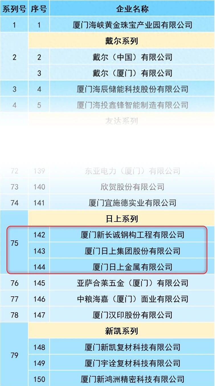 日上集團 | 喜報!2025年度廈門市重點工業(yè)企業(yè)名單正式出爐!